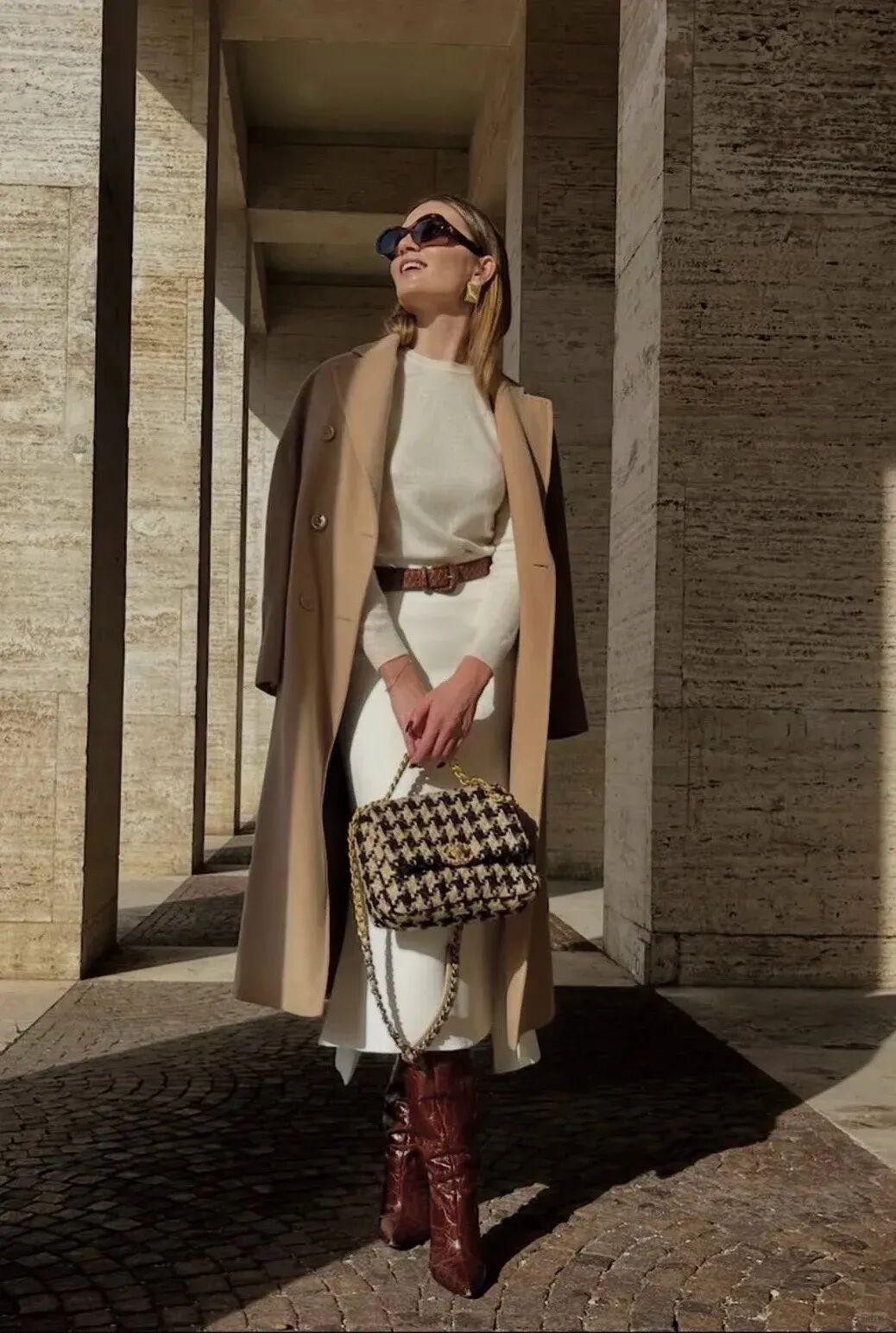 搭配短靴或及膝靴,它能从容应对严肃的职场会议,也能出入感性的文艺活动,既优雅得体,又不失温度与质感。